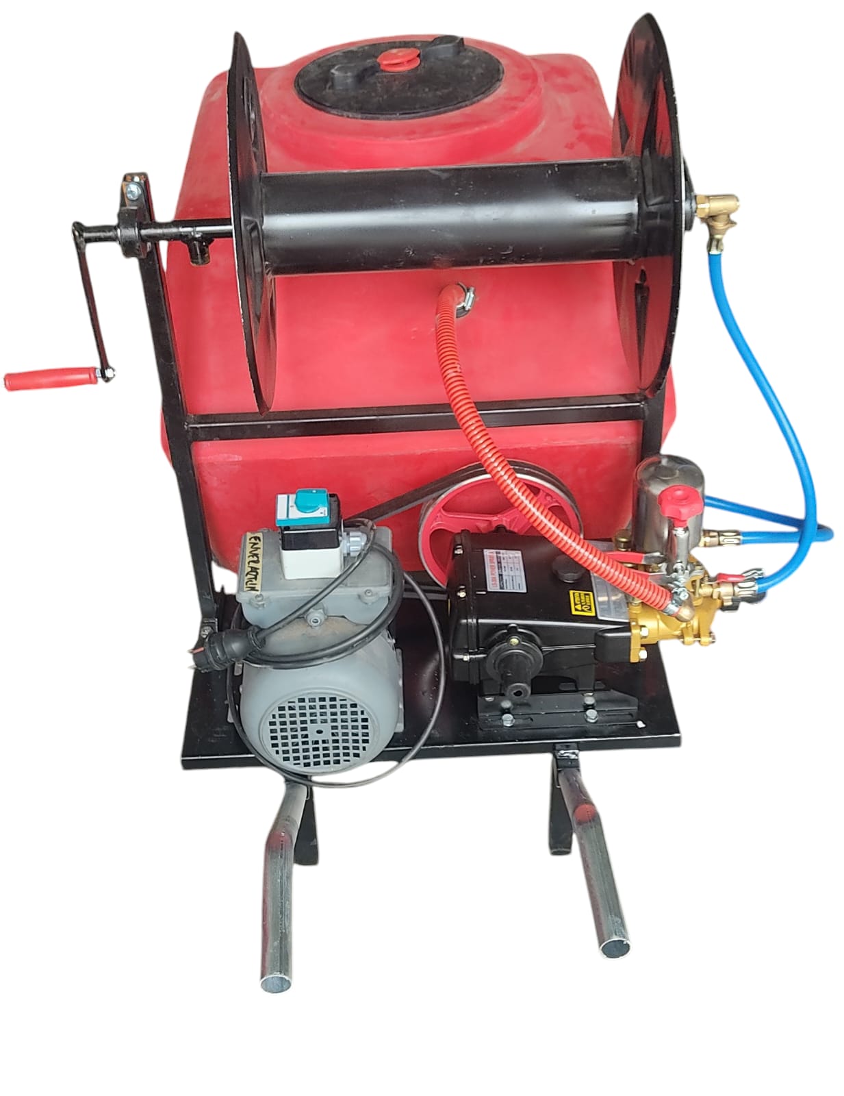 200 Litre polietilen depolu, 3 pistonlu 22 litre/dakika pompalı, 2 beygir Elektrik Motorlu, 34 cm tekerlek ile kolay yürütebilen bir makinadır.